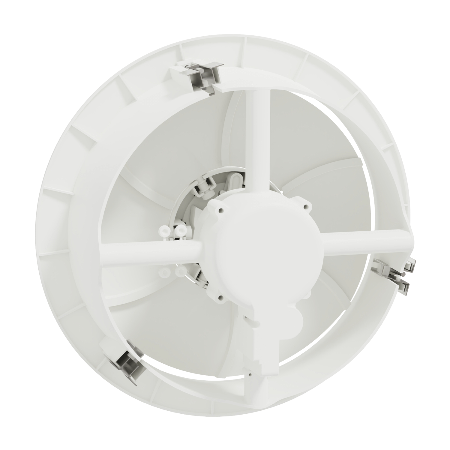 The automatically retracting fan blades on the Expressaire provide superior performance over similar size exhaust fans. While the fan is switched off, the blades are closed to shut out insects and prevent back draught. When switched on, they open quickly and silently by centrifugal force
