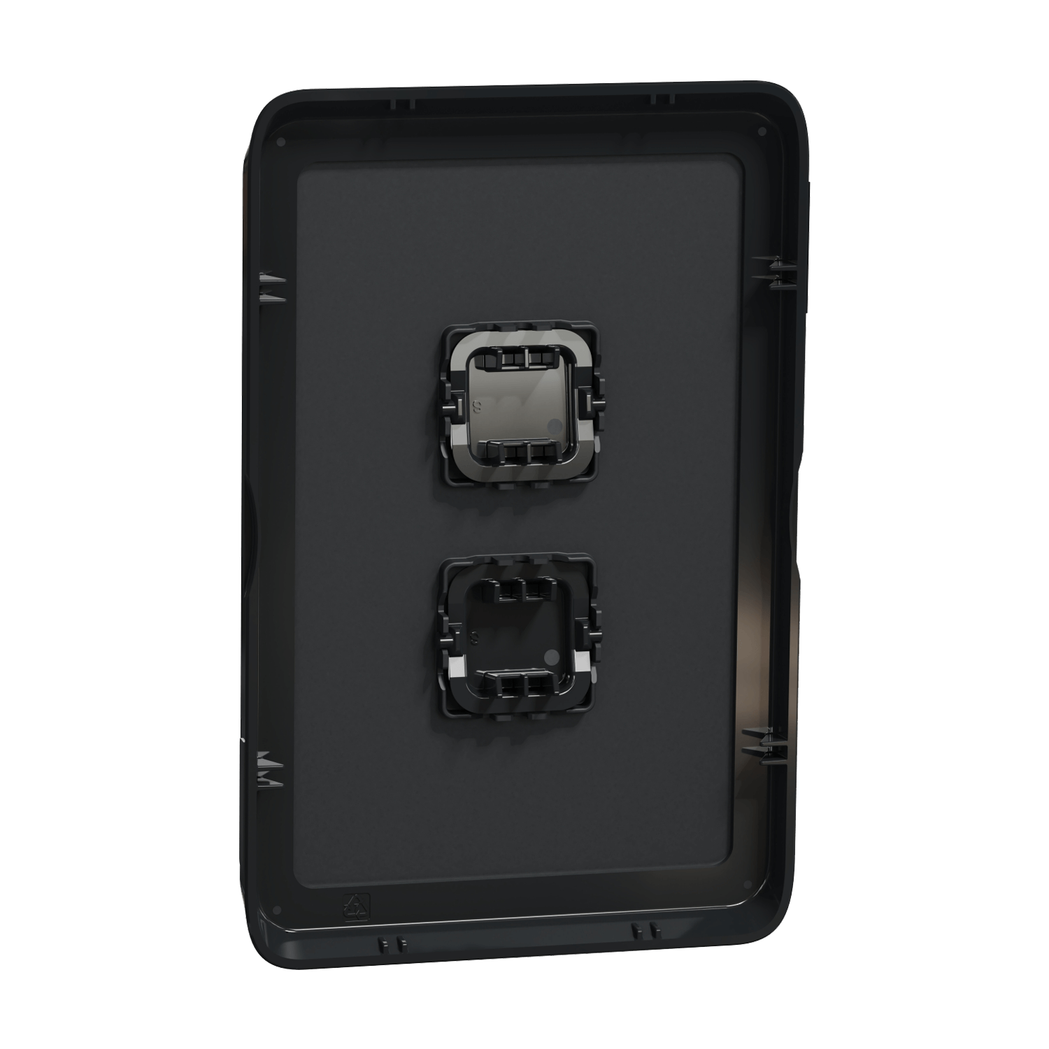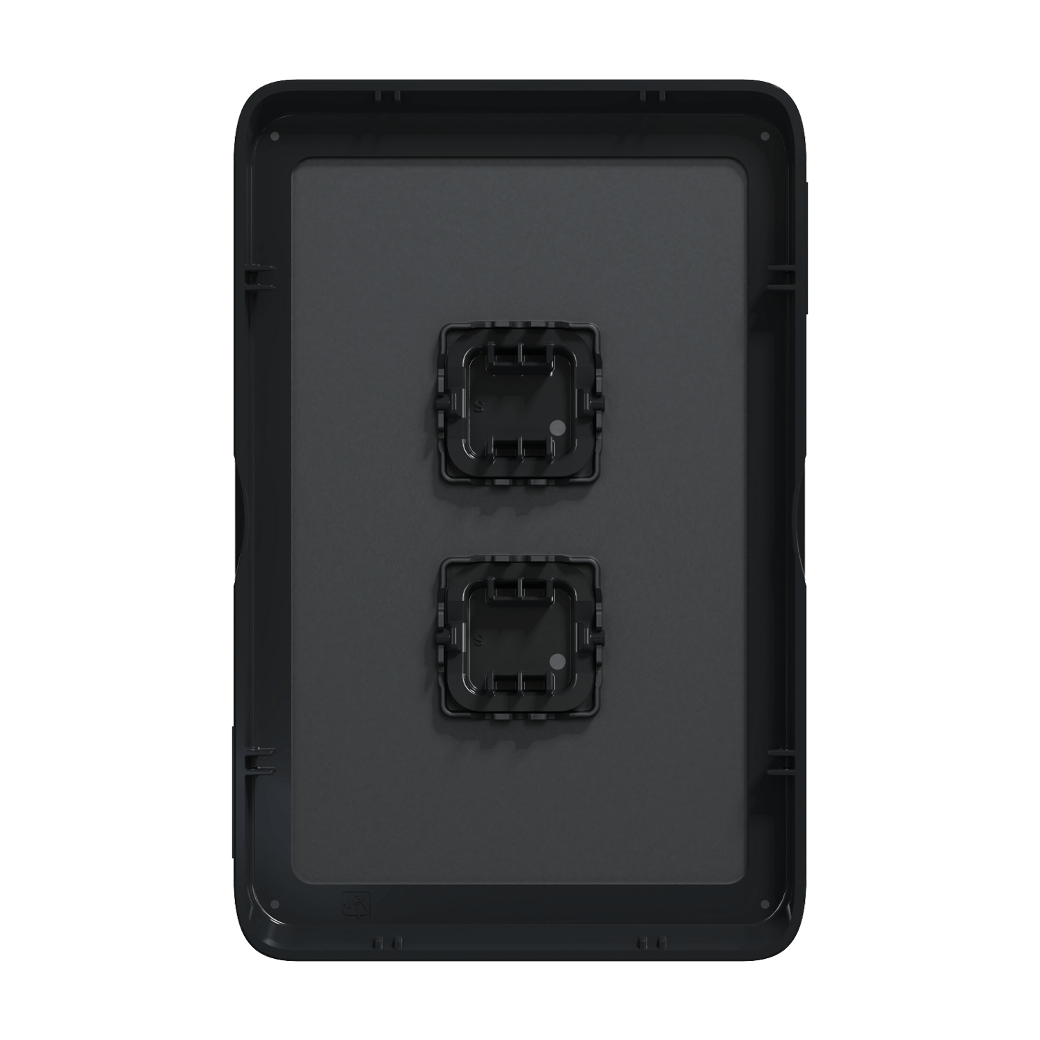 The Clipsal Iconic 3042C-XB is a Black 2 gang grid and surround cover only - It has no Mechanisms or backing plate - It is sold as just a skin cover plate. This cover can easily dress up your switch plate. Quick to install, and no electrician is required to change the skin over.