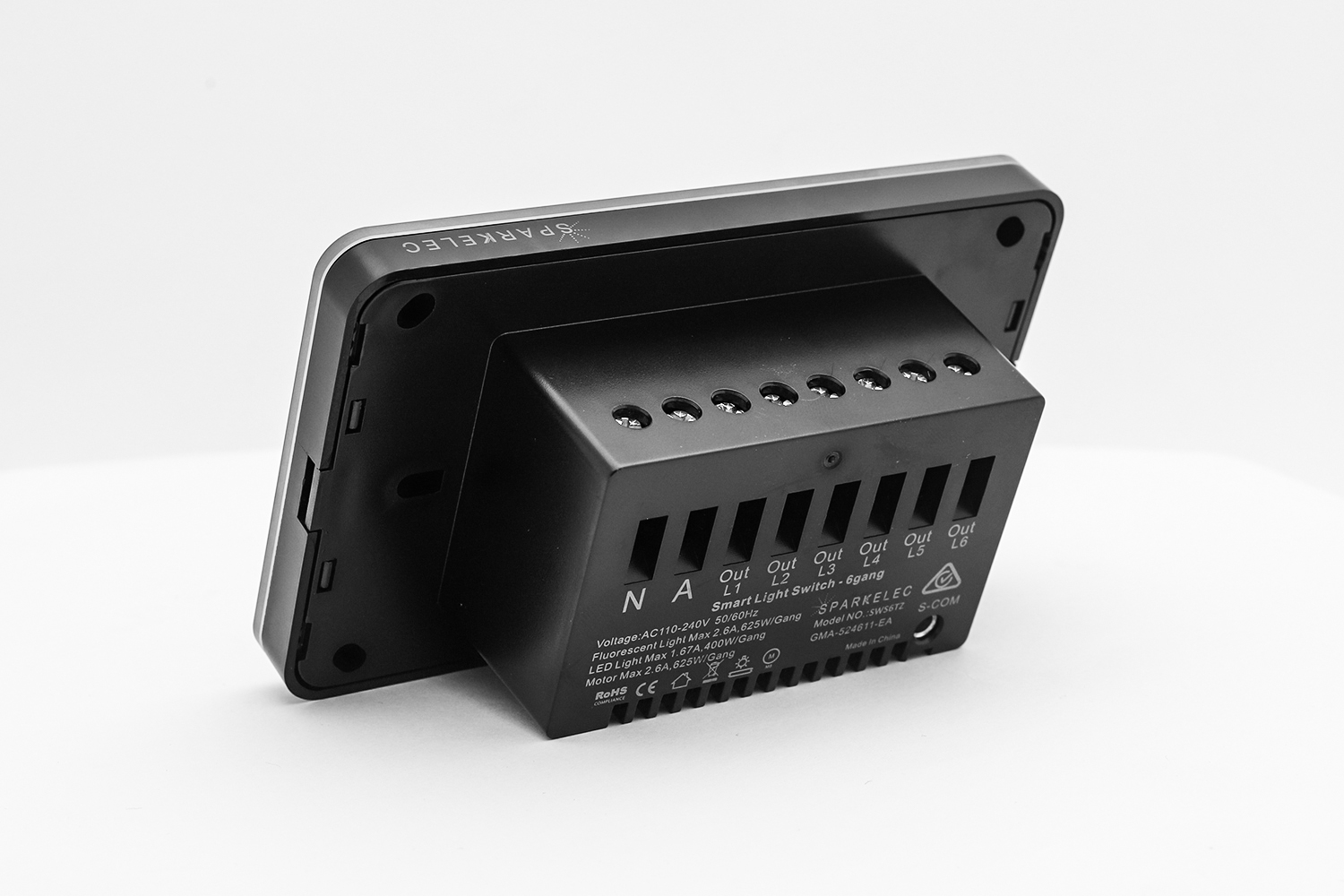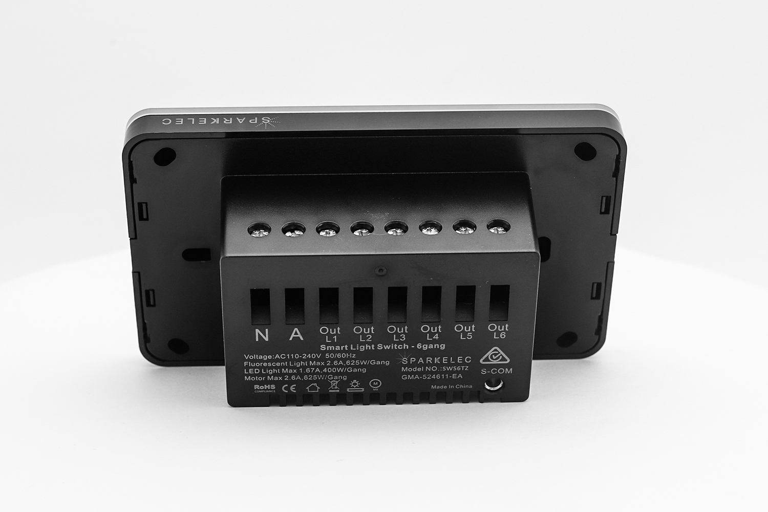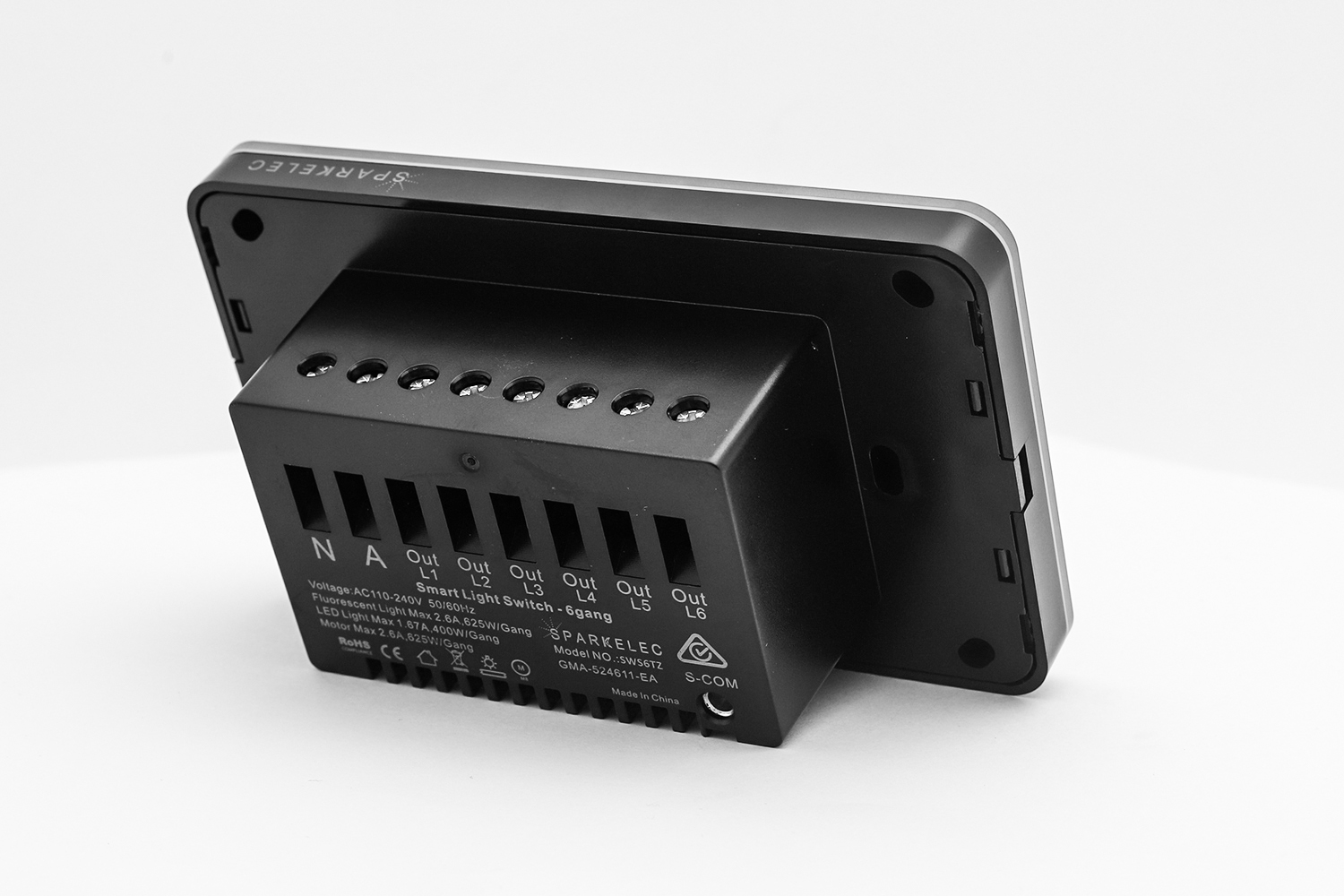 6 Gang Smart Zigbee Touch Glass Wall Switch White - SPARKELEC SWS6TZ-BLACK