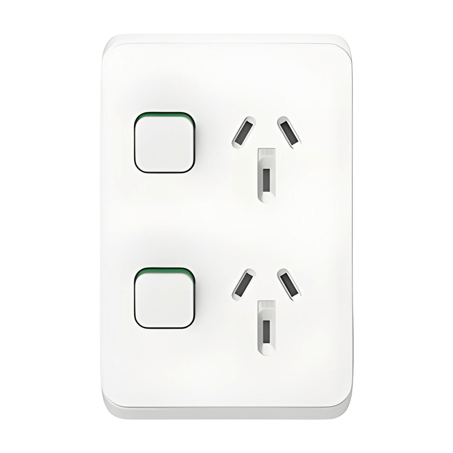 Clipsal Iconic Double Power Point 10A Horizontal - Vivid White 3025-VW